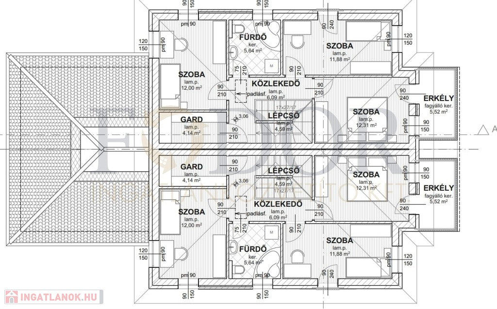 B jelű lakás bruttó 130 m2, 15 m2 terasz, 2,5, 3,8 m2 erkély, 400 m2 privát telekterület 139,9 Millió Forint
