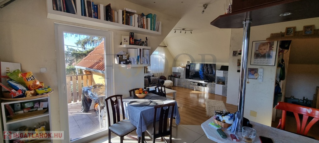 Eladásra kínálok egy két szintes családi ház tetőtéri szintjét kertkapcsolattal Budapest XVIII. kerületében, Glóriett telepen, a Gyékény tér közelében.