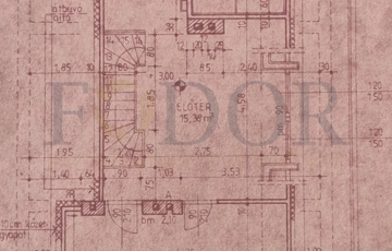 A ház 30-as téglából épült, amelyre 5 cm szigetelés került, a tető palával fedett, a tetőtér beépített. Az alsó szint két külön bejáraton keresztül is megközelíthető, ami különösen praktikus: a kert felől érkezve egy előtérbe jutunk, míg az utcafronti bejárat egy világos, fedett teraszon (8 m²) keresztül vezet a házba.